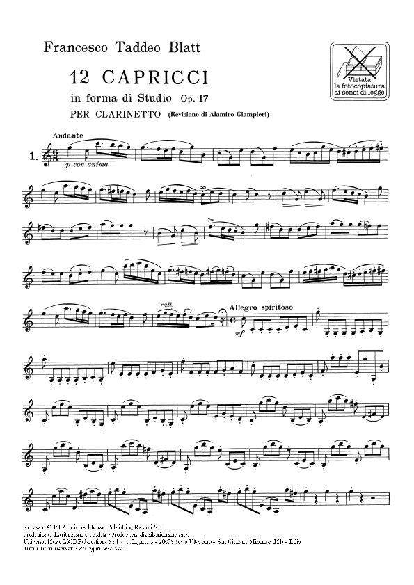 BLATT:12 CAPRICCI IN FORMA DI STUDIO CLARINET