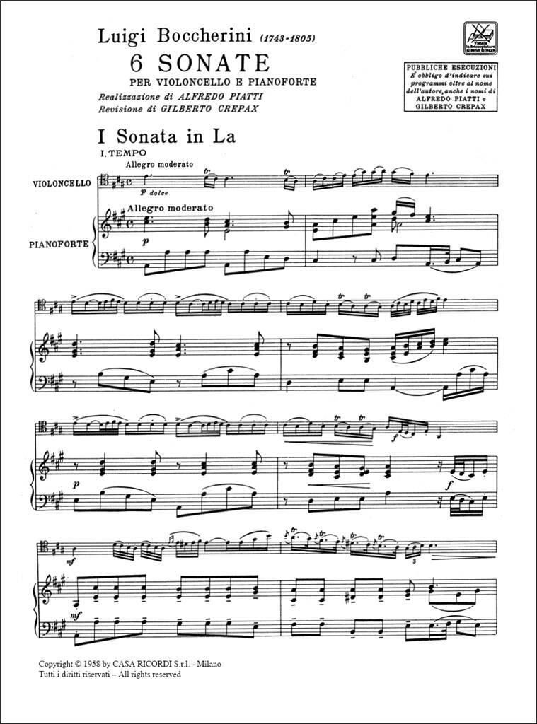 BOCCHERINI:6 SONATE FOR CELLO & PIANO (PIATTI-CREPAX) iz kategorije skladbe sodi med odlične čelo.