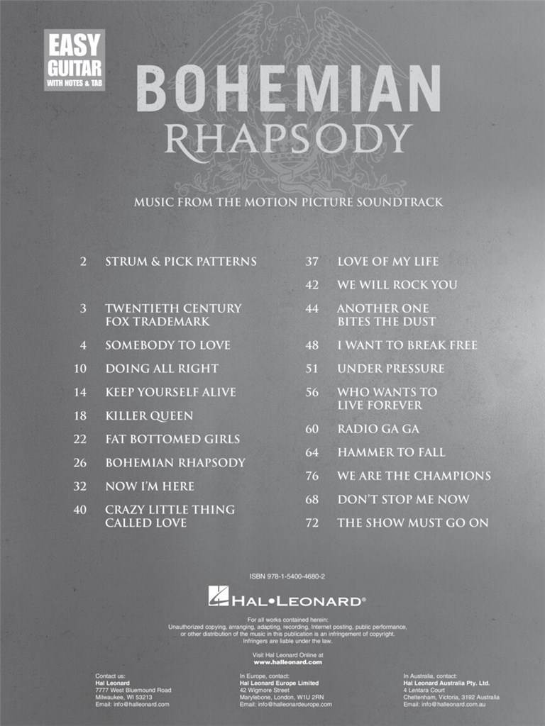 QUEEN:BOHEMIAN RHAPSODY MOTION PICTURE EASY GUITAR WITH NOTES & TAB iz kategorije skladbe sodi med odlične akustična kitara.HL0028963 1. Another One Bites the Dust [Queen] 2. Bohe ...