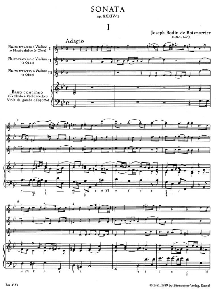 BOISMORTIER:SONATE G-MOLL FOR THREE FLUTES AND BASSO CON.