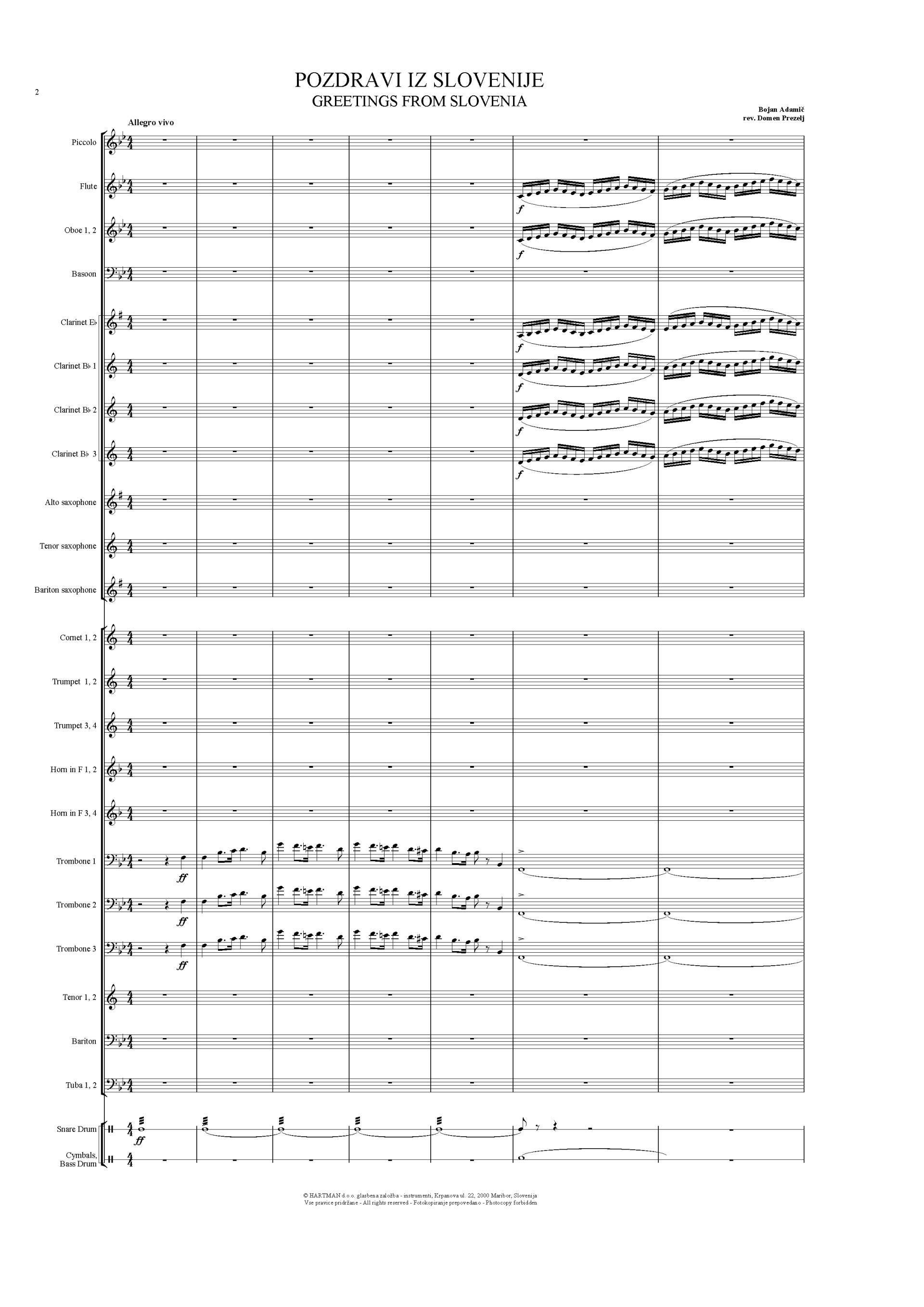 BOJAN ADAMIČ - POZDRAVI IZ SLOVENIJE iz kategorije koncertne skladbe sodi med odlične Pihalni orkester.