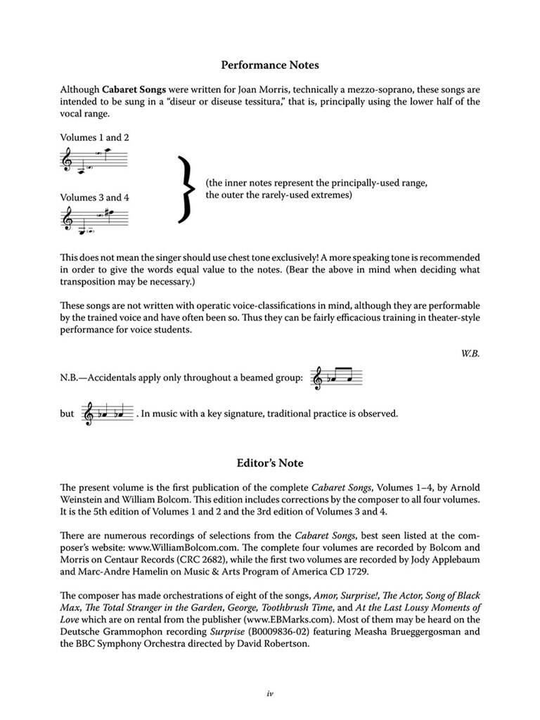 BOLCOM/WEINSTEIN:CABARET SONGS COMPLETE VOL.1-4 MEDIUM VOICE AND PIANO iz kategorije skladbe sodi med odlične vokal.