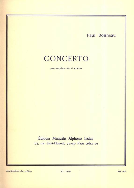 BONNEAU P.:CONCERTO POUR SAX ET PIANO