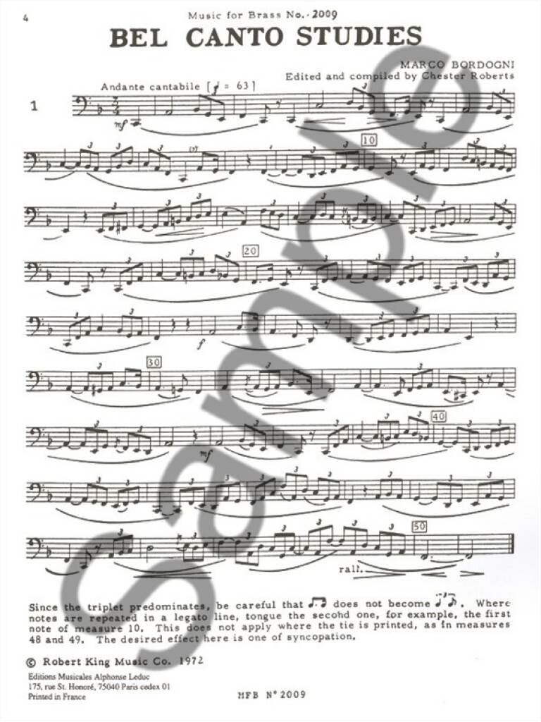 BORDOGNI:43 BEL CANTO STUDIES FOR TUBA OR BASS TROMBONE iz kategorije etude sodi med odlične tuba.