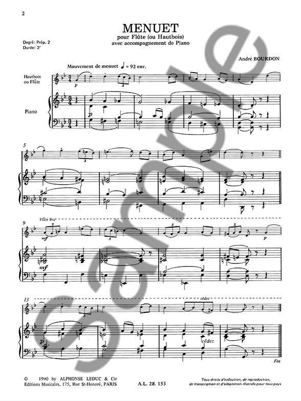 BOURDON:MENUET FOR FLUTE OU HAUTBOIS AND PIANO iz kategorije skladbe sodi med odlične flavta.