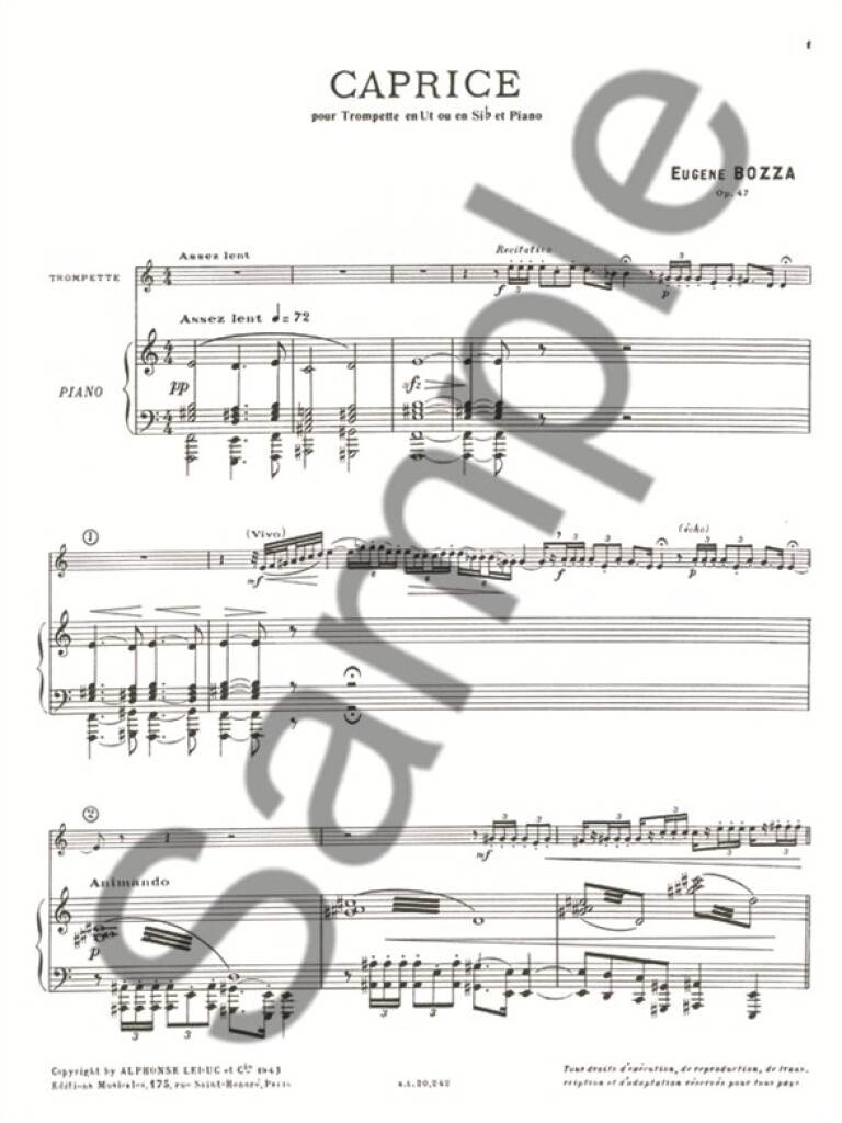 BOZZA:CAPRICE POUR TROMPETTE ET PIANO iz kategorije skladbe sodi med odlične trobenta.