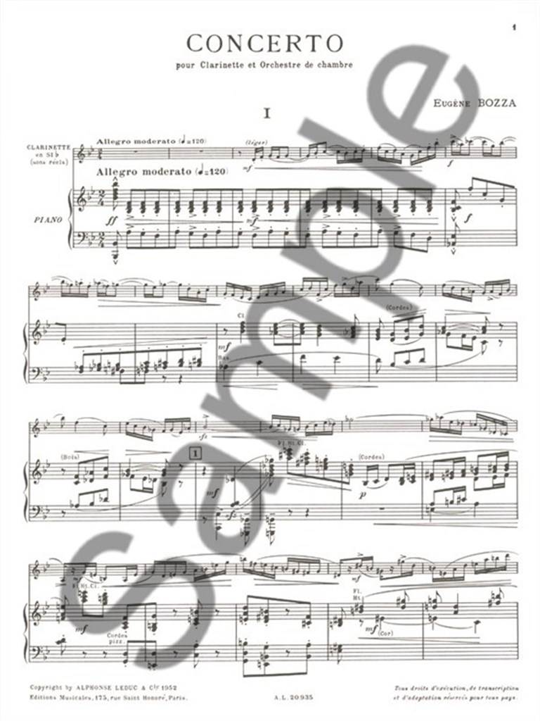 BOZZA:CONCERTO POUR CLARINETTE & PIANO iz kategorije skladbe sodi med odlične klarinet.