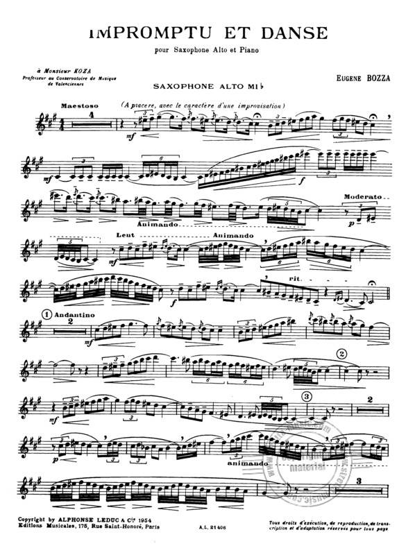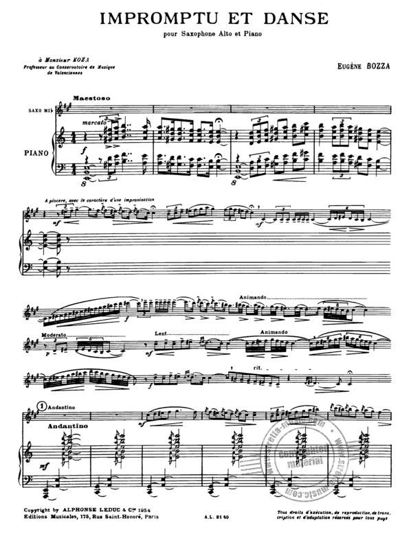 BOZZA:IMPROMPTU ET DANSE SAX iz kategorije skladbe sodi med odlične saksofon.