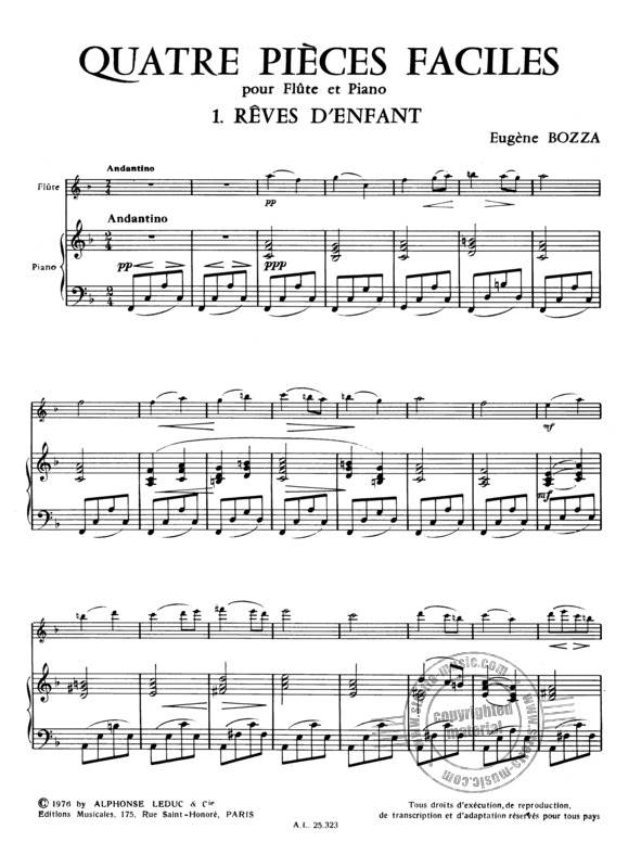 BOZZA:QUATRE PIECES FACILES,FLUTE+PIANO iz kategorije skladbe sodi med odlične flavta.