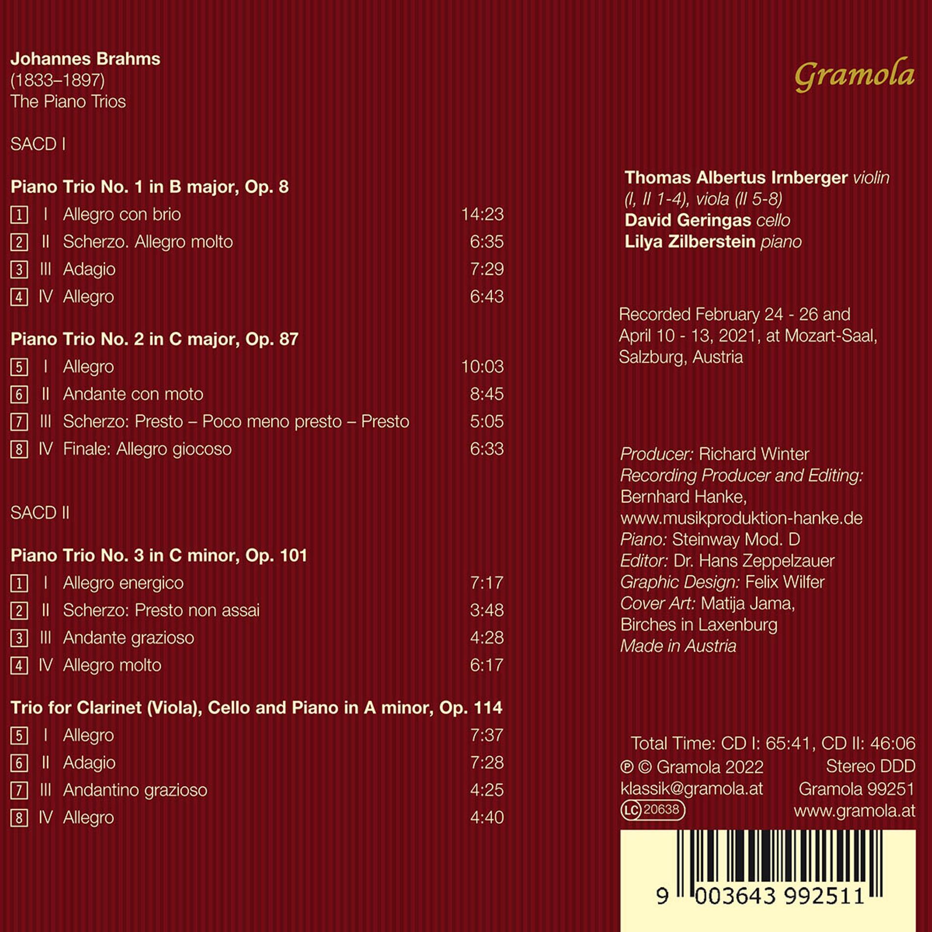 BRAHMS:DIE KLAVIERTRIOS/IRNBERGER/GERINGAS/ZILBERSTEIN