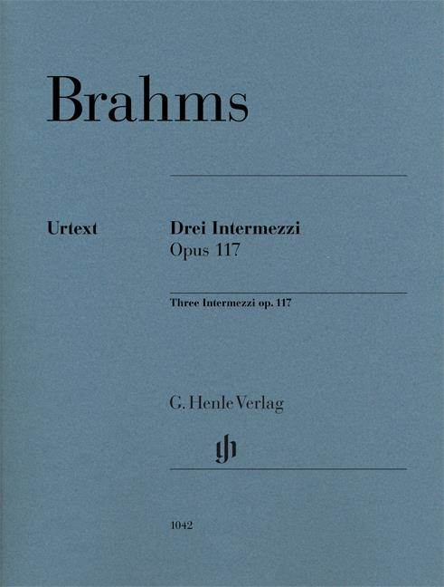 Trije priljubljeni Intermezzi op. 117 lahko vidimo kot utelešenje Brahmsovega poznega dela za klavir. Clara Schumann je priznala: "V teh delih končno začutim, kako se glasbeno življenje spet meša v moji duši." Brahms se je odzval, kot je pogosto, precej osorno. Čeprav je tri Intermezzije včasih opisal kot "Wiegenlieder" (uspavanke), je ta naslov uradno zavrnil: "Takrat bi moralo reči, uspavanka nesrečne matere ali nesramnega samca." Nova izdaja teh zmerno težkih Intermezzi (težavnostna stopnja 5/6) je zdaj popravljena po glasbenem besedilu celotne izdaje Brahms in vsebuje prste Andreasa Boydeja.