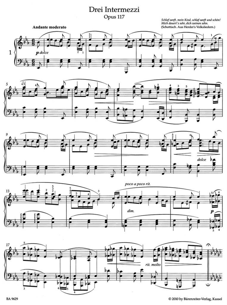 BRAHMS:THREE INTERMEZZI OP.117 iz kategorije skladbe, sodi med odlične klavir.