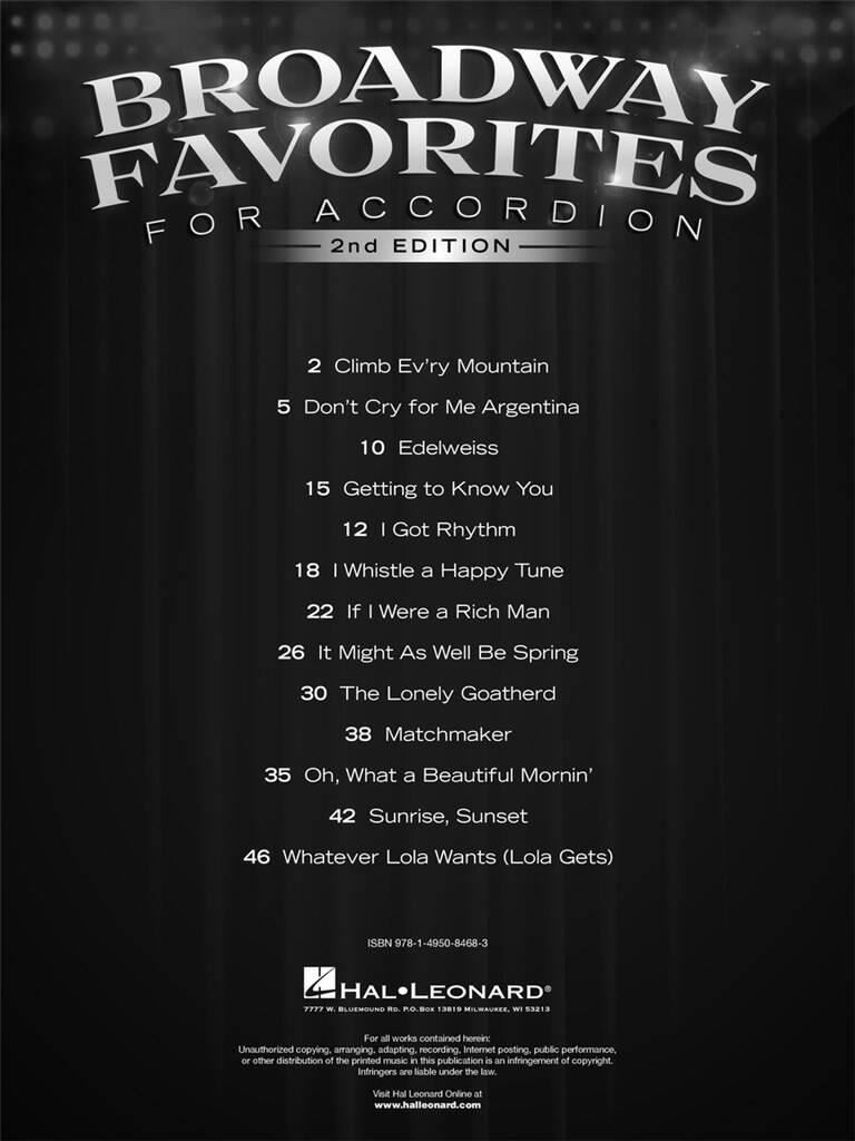 BROADWAY FAVORITES FOR ACCORDION iz kategorije zabavna glasba sodi med odlične Klavirska.