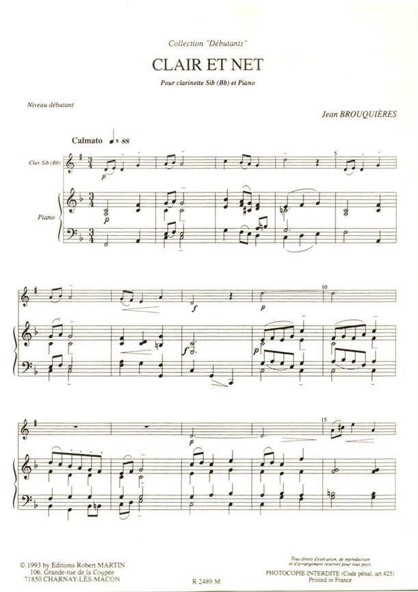 BROUQUIERES J:CLAIR ET NET, CLARINETT ET PIANO iz kategorije skladbe sodi med odlične klarinet.