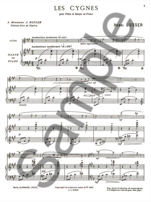 BUSSER:LES CYGNES FLUTE ET HARPE OU PIANO