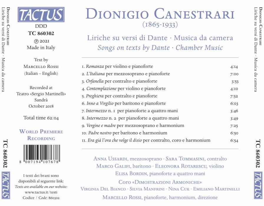 CANESTRARI:LIRICHE SU VERSI DI DANTE/MUSICA CAMERA iz kategorije klasika in slovenska narodna sodi med odlične cd.