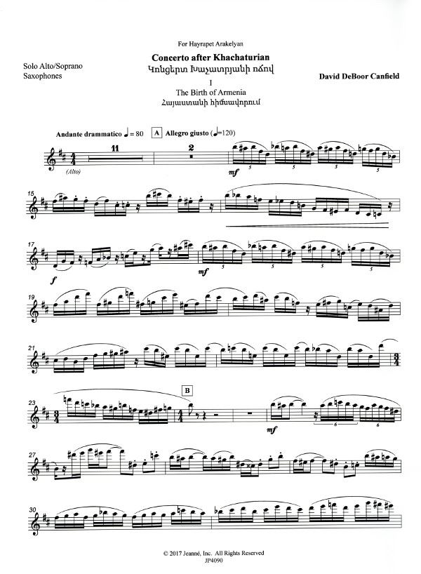 CANFIELD:CONCERTO AFTER KHACHATURIAN ALTO/SOPRANO SAXOPHONE OR CLARINET AND ACC. iz kategorije skladbe sodi med odlične saksofon.