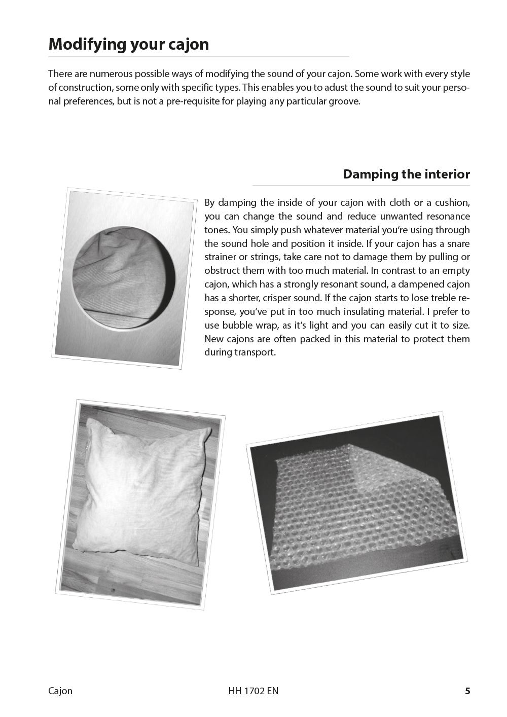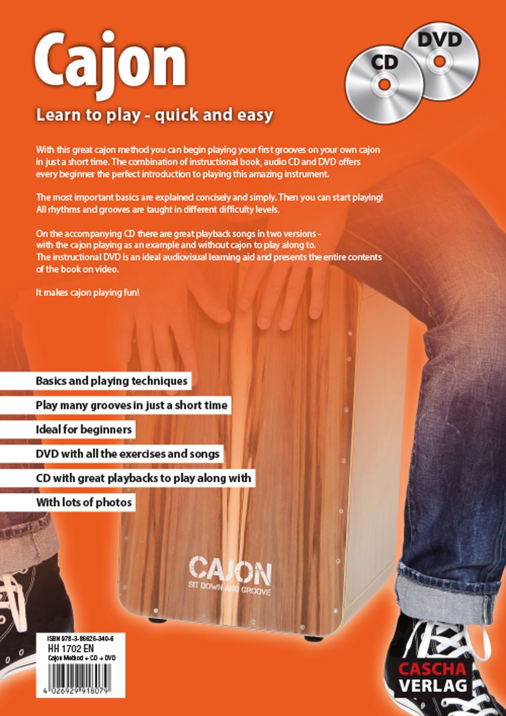 S to odlično metodo cajona lahko začnete igrati svoje prve groove na lastnem cajonu v samo kratkem času. Kombinacija knjige z navodili, avdio CD-ja in DVD-ja ponuja vsakemu začetniku popoln uvod v igranje tega neverjetnega instrumenta. Najpomembnejše osnove so razložene jedrnato in preprosto. Potem lahko začnete igrati! Vsi ritmi in ritmi se učijo na različnih težavnostnih stopnjah.