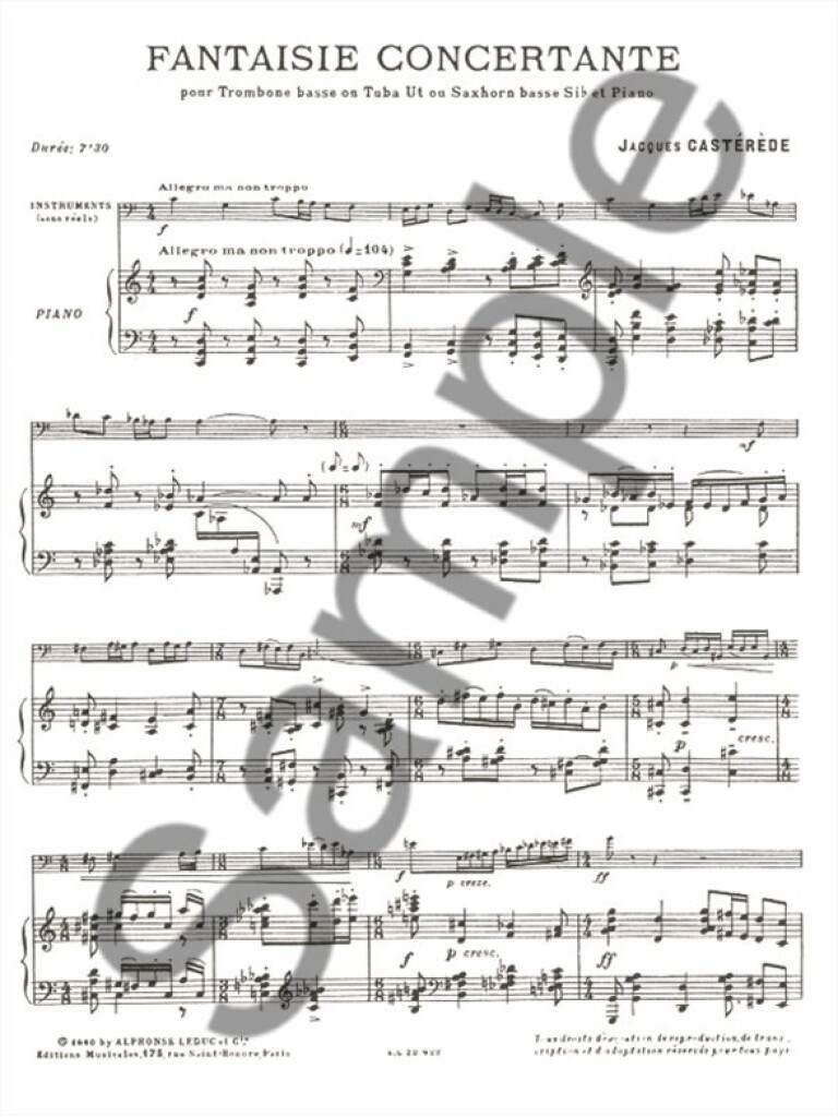 CASTEREDE:FANTAISIE CONCERTANTE POUR TROMBONE BASSE OU TUBA iz kategorije skladbe sodi med odlične pozavna.