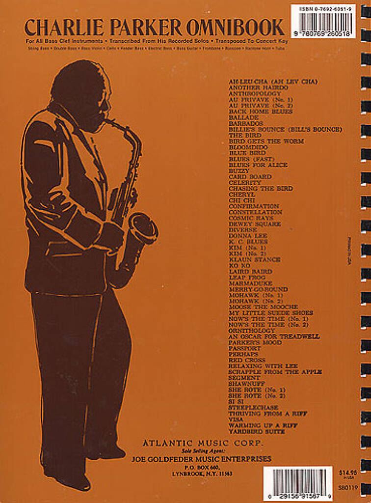 CHARLIE PARKER OMNIBOOK FOR ALL BASS CLEF INSTRUMENTS iz kategorije zabavna glasba sodi med odlične Notna literatura.1. Ah-Leu-Cha 2. An Oscar For Treadwell 3. Another Hairdo 4. An ...