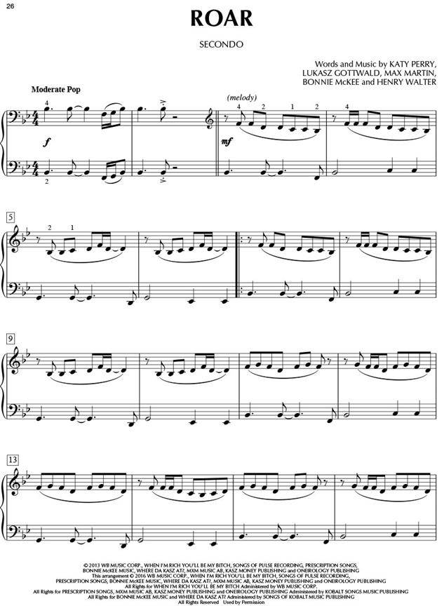 CHART HITS FOR EASY DUET + AUDIO ACCESS 4HANDS iz kategorije klavir 4 ročno sodi med odlične klavir.All Of Me Grenade Happy Hello Just Give Me A Reason Roar Shake It Off Stay Stay ...