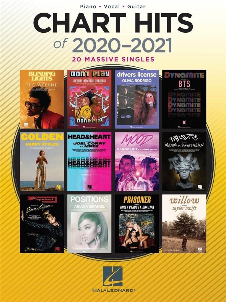 CHART HITS OF 2020-2021 PVG iz kategorije zabavna glasba sodi med odlične Notna literatura.HL00364893 1. Afterglow [Ed Sheeran] 2. Anyone [Justin Bieber] 3. Blinding Lights [The W ...