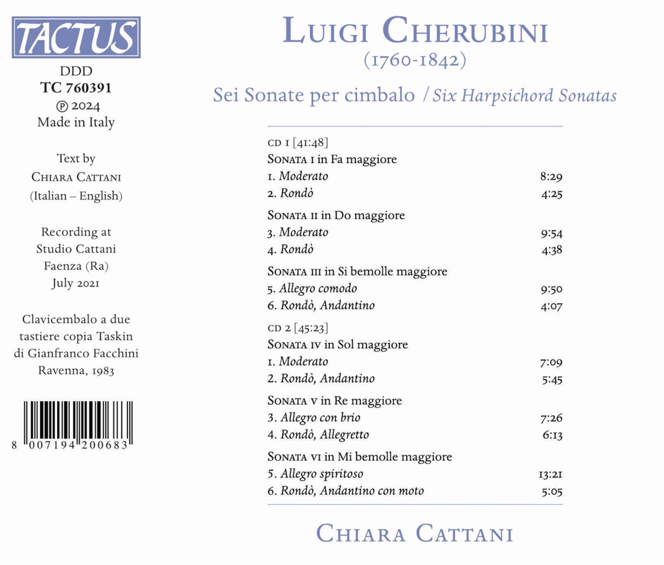 CHERUBINI:SEI SONATE PER CIMBALO/CATTANI 2CD iz kategorije klasika in slovenska narodna sodi med odlične cd.