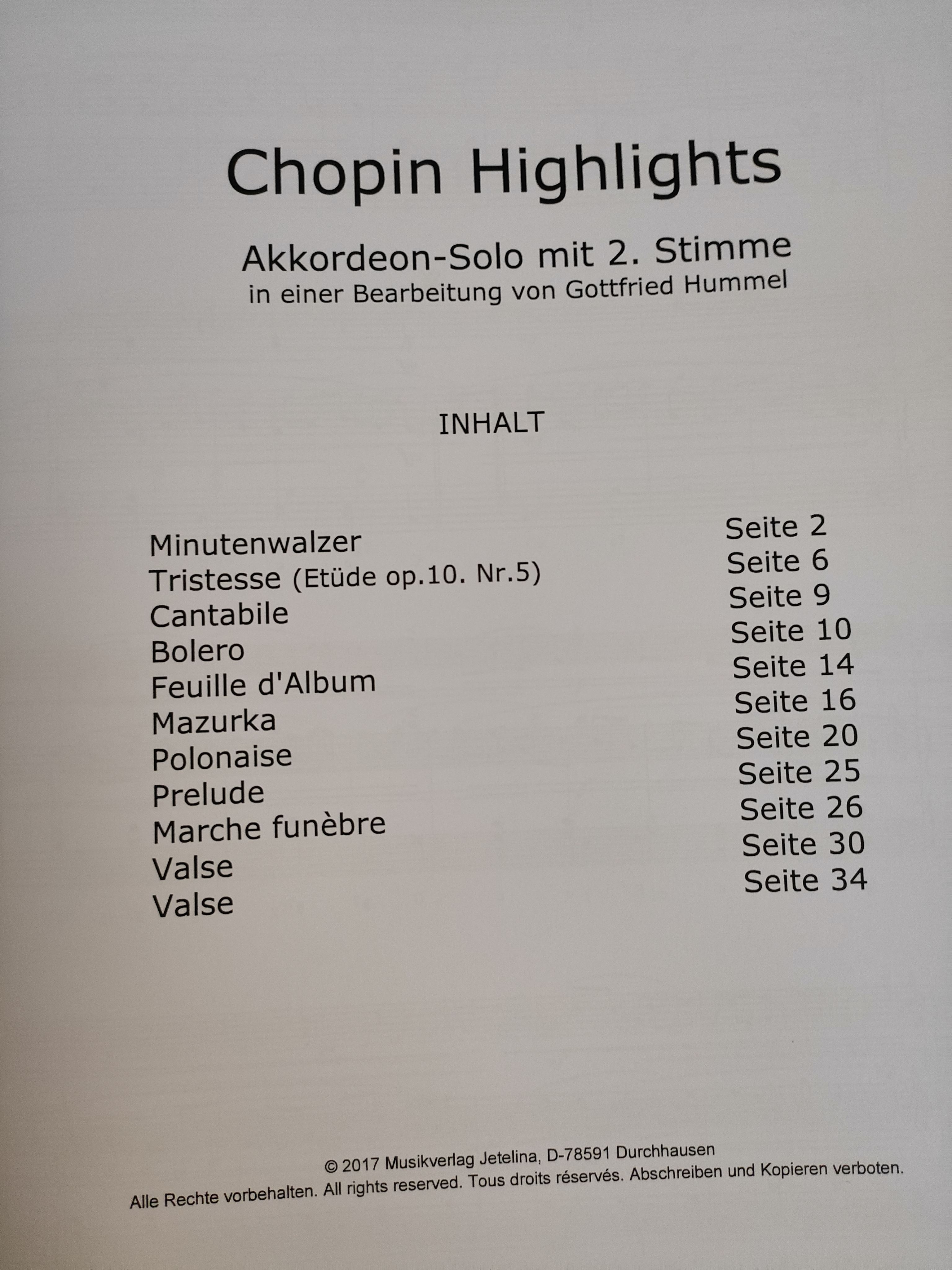 CHOPIN HIGHLIGHTS AKKORDEON iz kategorije skladbe sodi med odlične Klavirska.