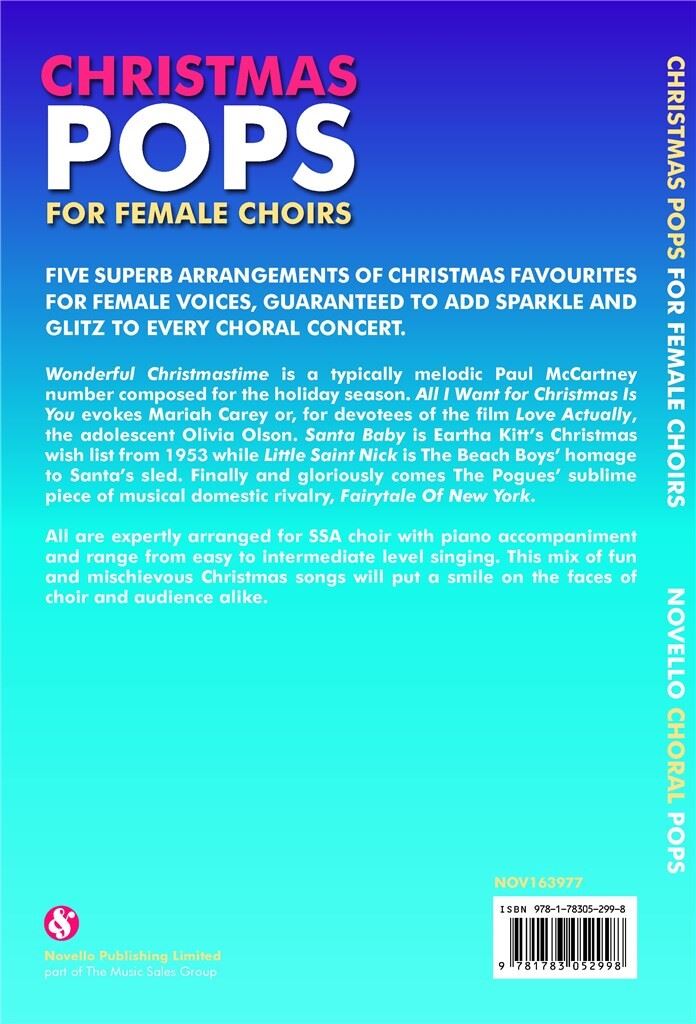 CHRISTMAS POPS FOR FEMALE CHOIRS SSA iz kategorije zbori sodi med odlične vokal.NOV163977 1. Wonderful Christmastime 2. All I Want For Christmas Is You 3. Santa Baby 4. Little Sai ...
