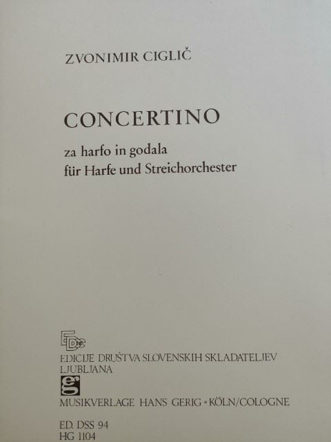 CIGLIČ:CONCERTINO ZA HARFO IN GODALA iz kategorije skladbe sodi med odlične harfa.