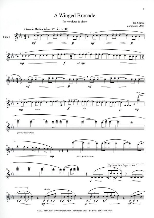 CLARKE:A WINGED BROCADE FOR TWO FLUTES & PIANO