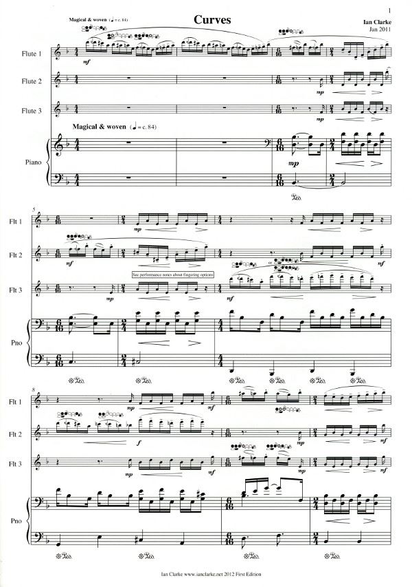 CLARKE:CURVES FOR 3 FLUTES AND PIANO