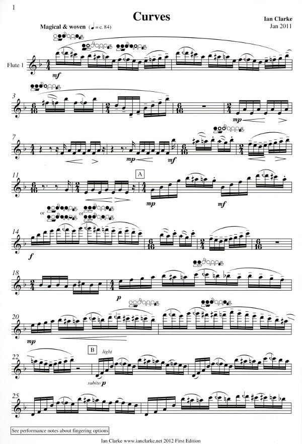 CLARKE:CURVES FOR 3 FLUTES AND PIANO iz kategorije pihala komorni sestavi sodi med odlične pihala.