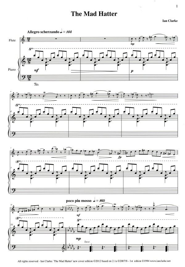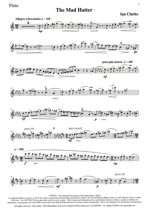 CLARKE:THE MAD HATTER FOR FLUTE & PIANO iz kategorije skladbe sodi med odlične flavta.