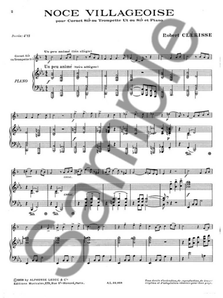 CLERISSE:NOCE VILLAGEOISE POUR CORNET OU TROMPETTE ET PIANO iz kategorije skladbe sodi med odlične trobenta.
