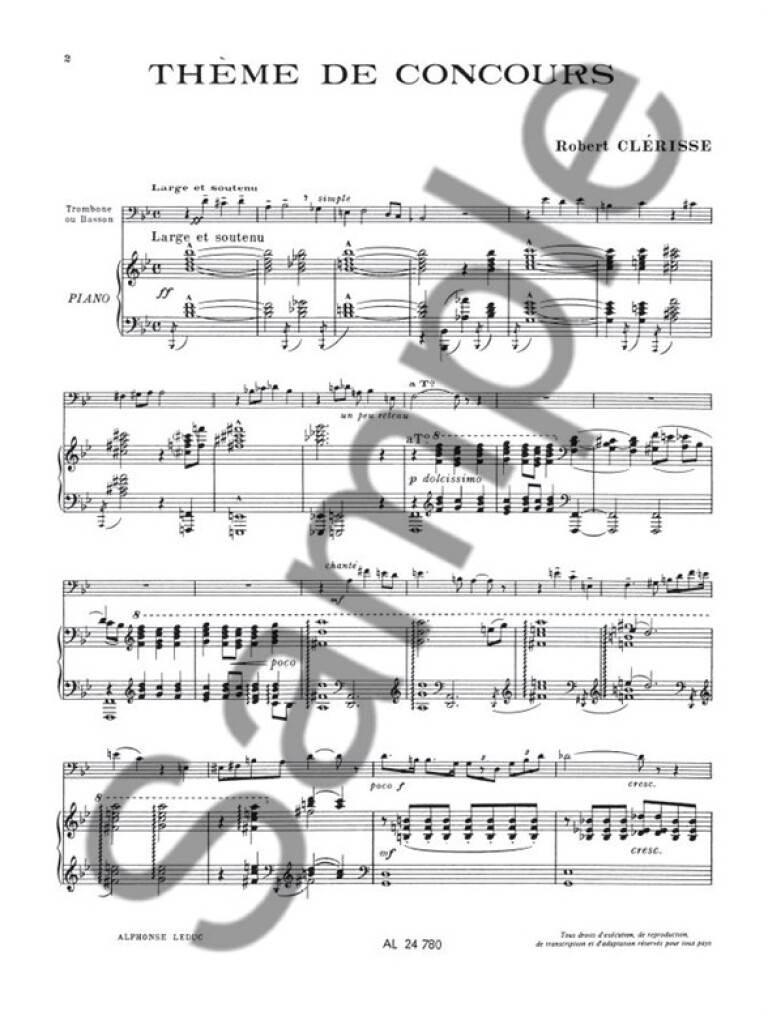 CLERISSE:THEME DE CONCOURS POUR TROMBONE OU BASSON ET PIANO iz kategorije skladbe sodi med odlične pozavna.