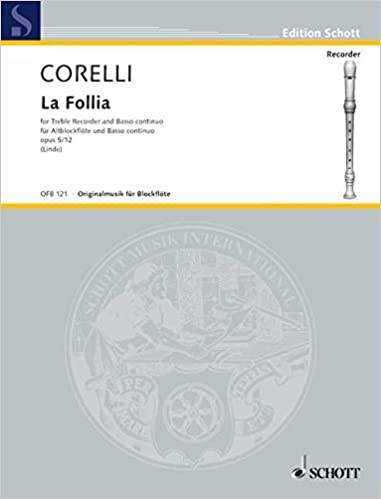 CORELLI:SONATA LA FOLLIA OP.5/12 TREBLE RECORDER iz kategorije skladbe sodi med odlične kljunasta flavta.