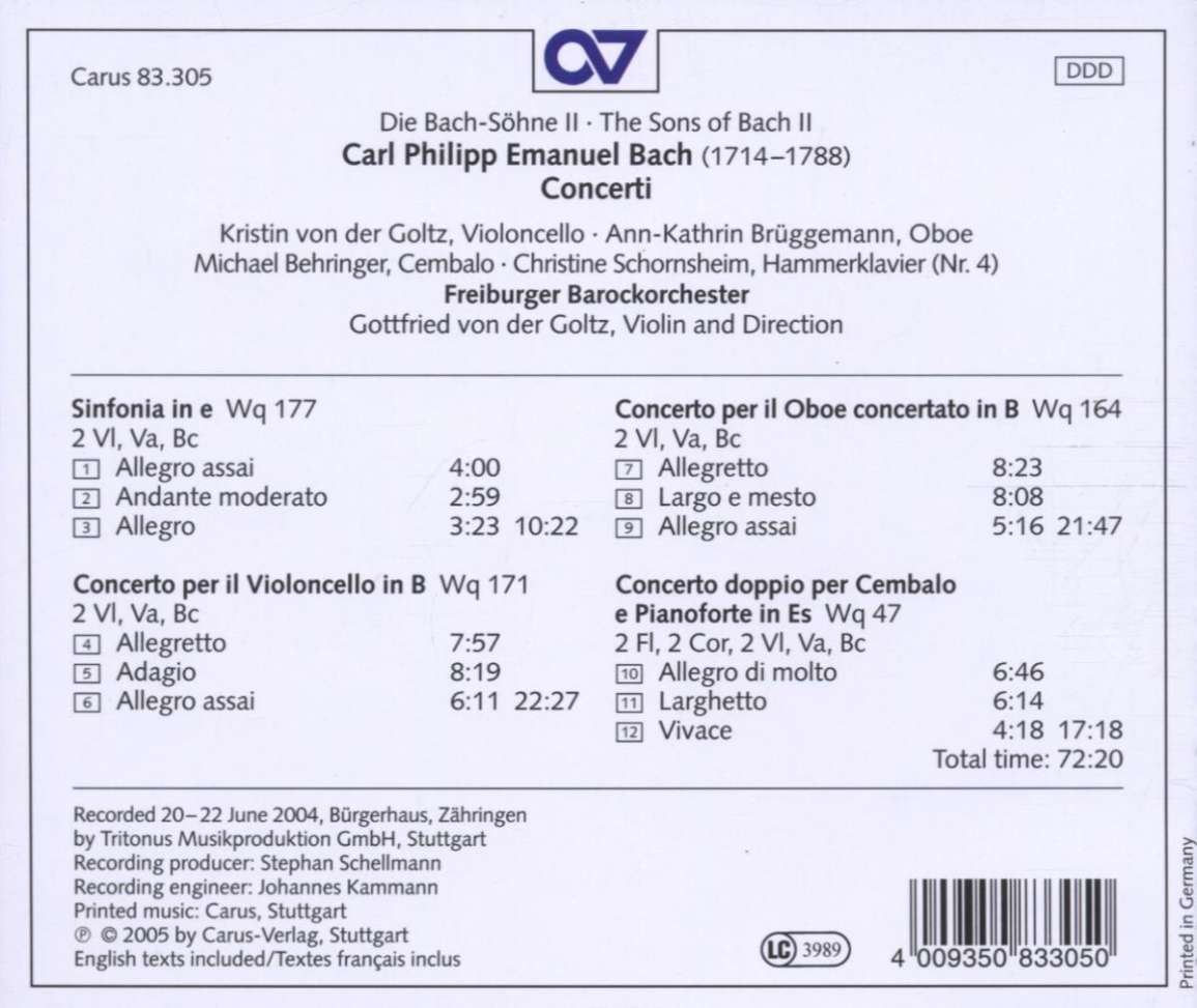 C.PH.E.BACH:CONCERTI/FREIBURGER BAROCKORCHESTER