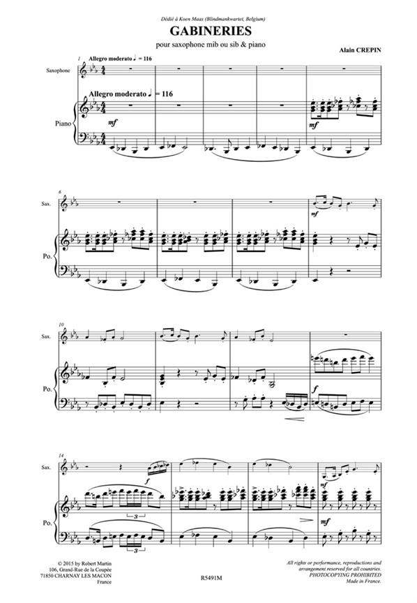 CREPIN:GBINERIES SAX & PIANO iz kategorije skladbe sodi med odlične saksofon.