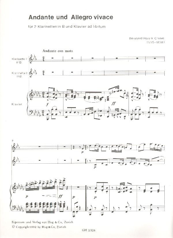 CRUSELL:ANDANTE UND ALLEGRO VIVACE FOR 2 CLARINETS AND PIANO