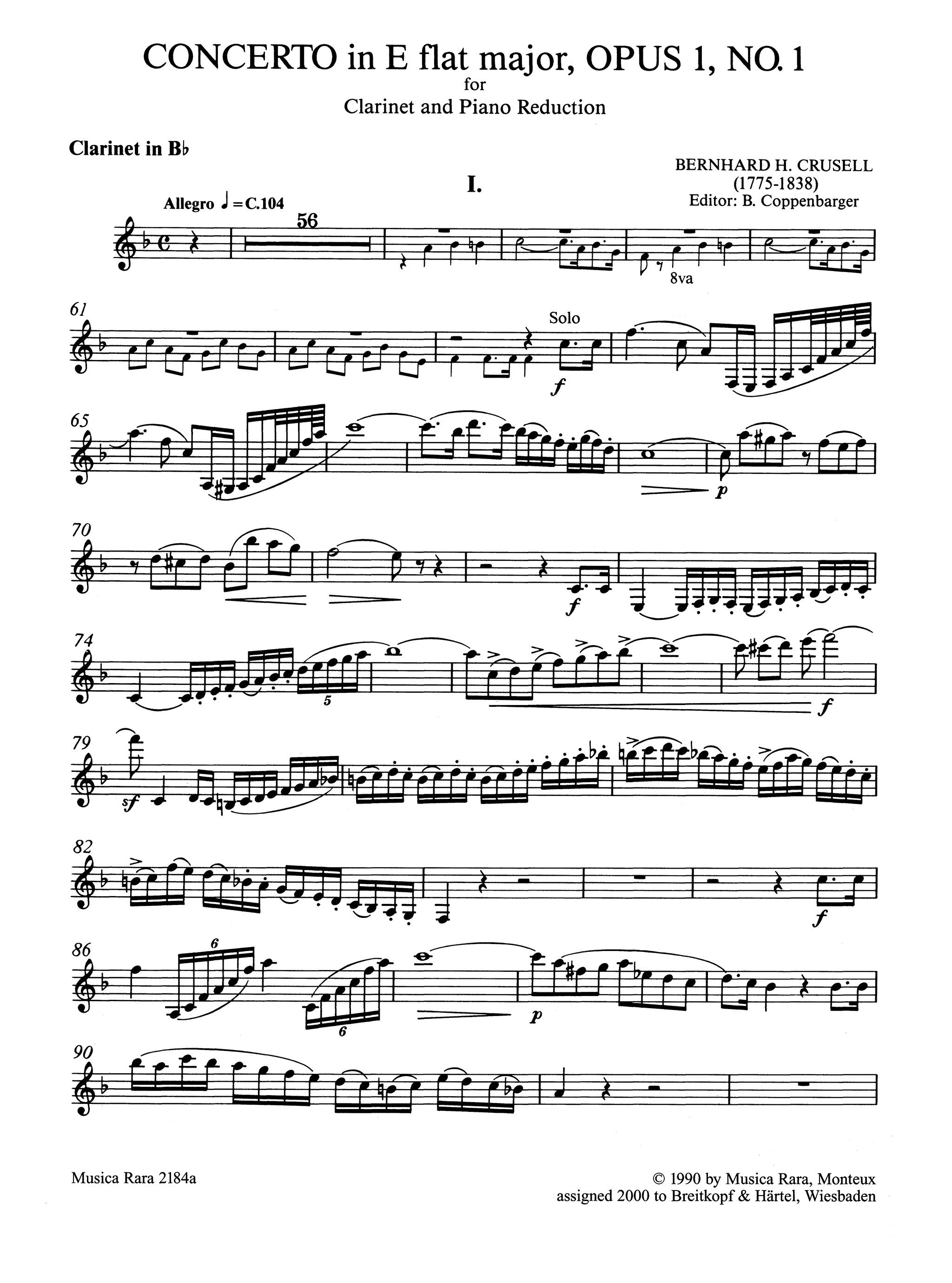 CRUSELL:CONCERTO FOR CLARINET OP.1NO.1 CLARINET AND PIANO iz kategorije skladbe sodi med odlične klarinet.