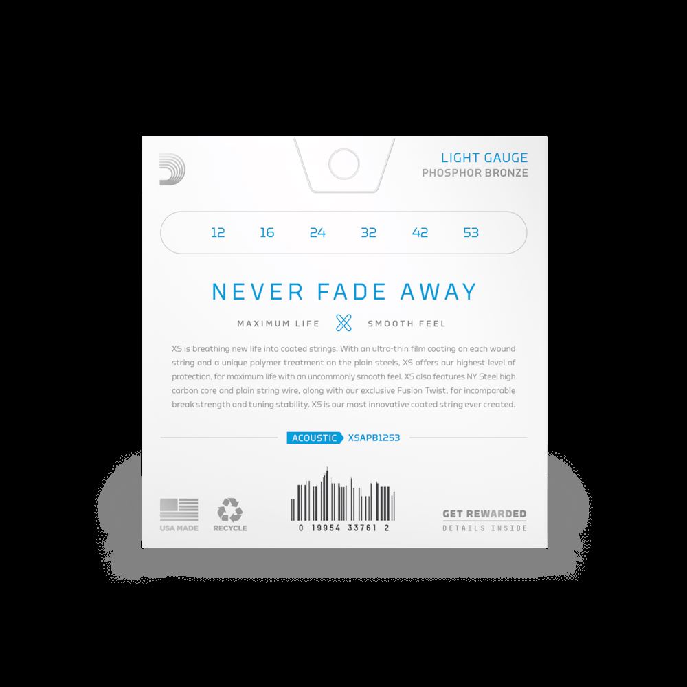 Strune XS Phosphor Bronze, ki so nastale z našim največjim prebojem na področju inovacij strun, imajo najdaljšo življenjsko dobo med vsemi strunami za akustično kitaro D'Addario. Prevleka XS daje našim toplim, uravnoteženim strunam iz fosfornega brona maksimalno življenjsko dobo z neobičajno gladkim občutkom. Strune za akustično kitaro, prevlečene s XS, so izdelane iz jedra iz NY Steel, ovitne žice iz fosfornega brona in tehnologije Fusion Twist, poleg dramatično podaljšane življenjske dobe pa imajo neprimerljivo moč pretrganja in stabilnost pri uglaševanju. 12-53 Light strune so naš najbolj priljubljen akustični merilnik, ki zagotavlja lepo ravnovesje igralnosti in tona.