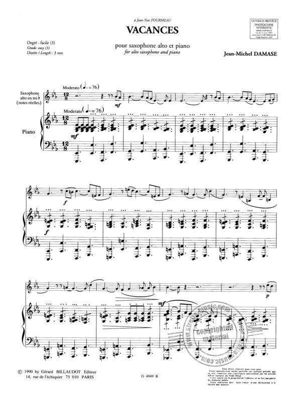 DAMASE:VACANCES SAX ALTO & PIANO iz kategorije skladbe sodi med odlične saksofon.