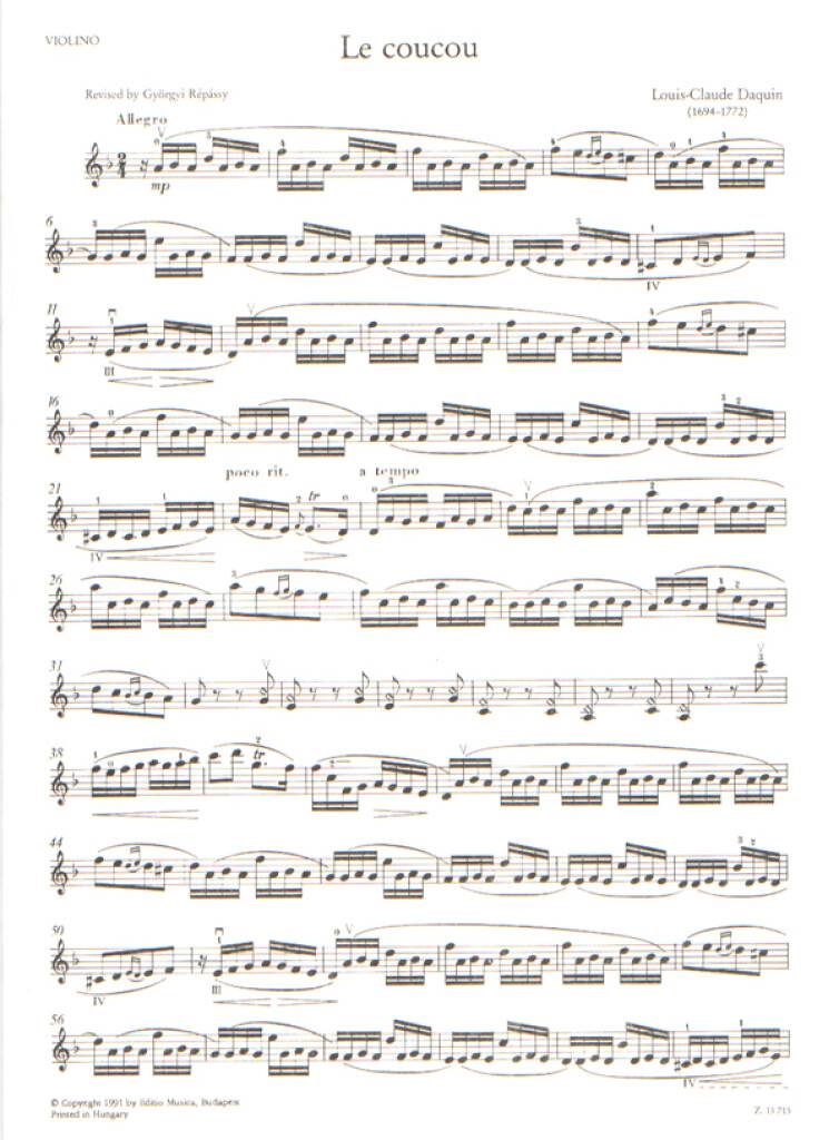 DAQUIN:LE COUCOU VIOLIN AND PIANO iz kategorije skladbe sodi med odlične violina.