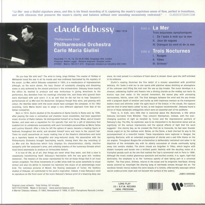 DEBUSSY:LA MER/TROIS NOCTURNES/GIULINI iz kategorije lp sodi med odlične Nosilci zvoka in slike.