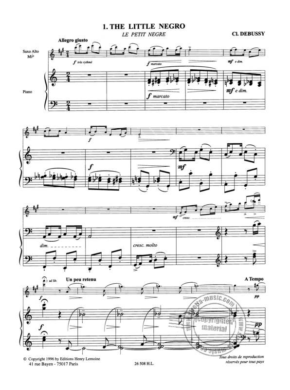 DEBUSSY:SEPT PIECES SAXOPHONE ALTO ET PIANO iz kategorije skladbe sodi med odlične saksofon.The Little Negro - La Fille aux cheveux de lin - The Little Shepherd - Golliwog s Cake W ...