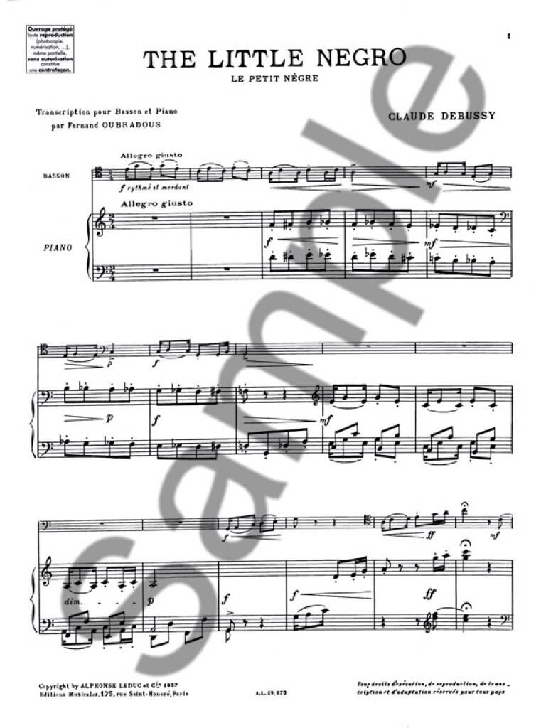 DEBUSSY:THE LITTLE NEGRO BASSOON & PIANO iz kategorije skladbe sodi med odlične fagot.