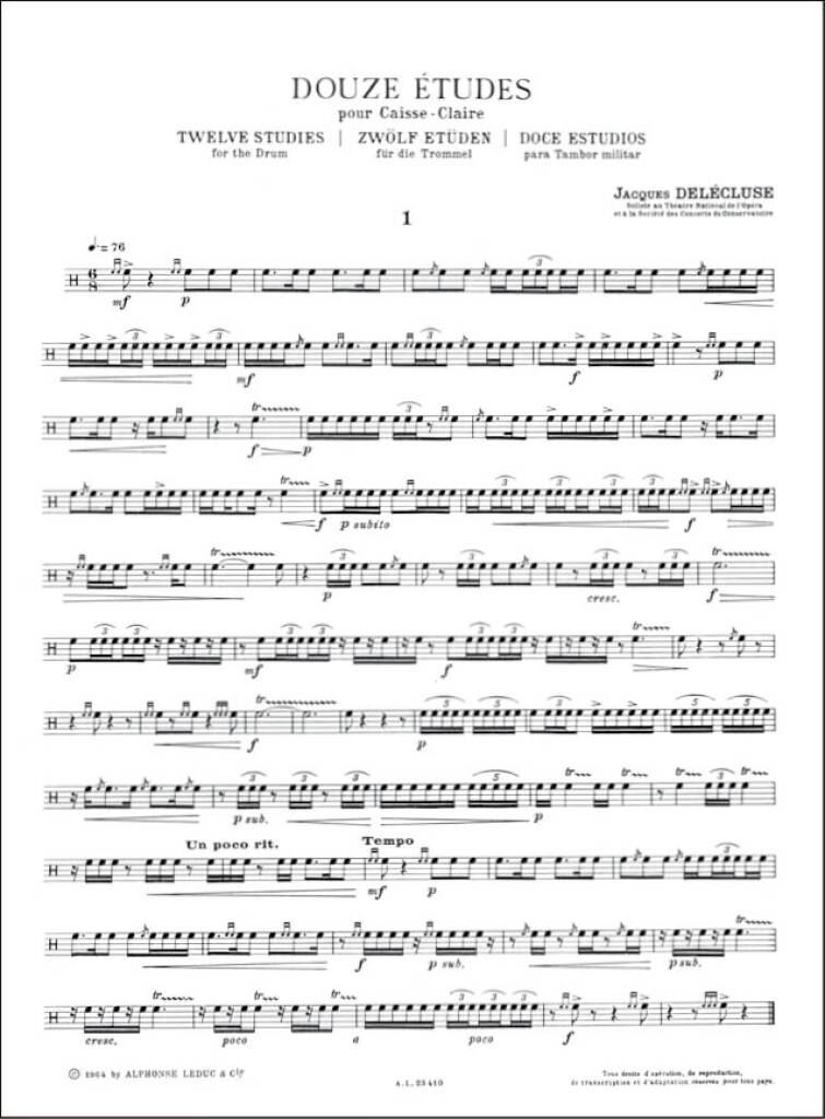 DELECLUSE:12 (DOUZE) ETUDES FOR THE DRUM iz kategorije etude sodi med odlične tolkala.