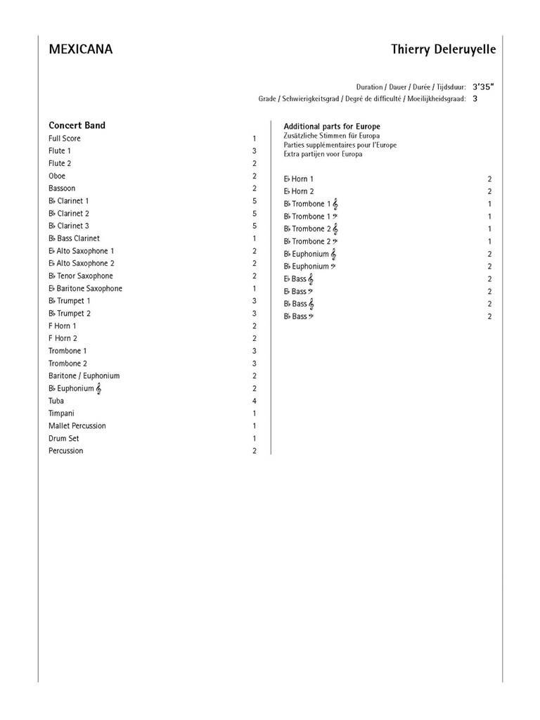 DELERUYELLE:MEXICANA CONCERT BAND iz kategorije koncertne skladbe sodi med odlične Pihalni orkester.