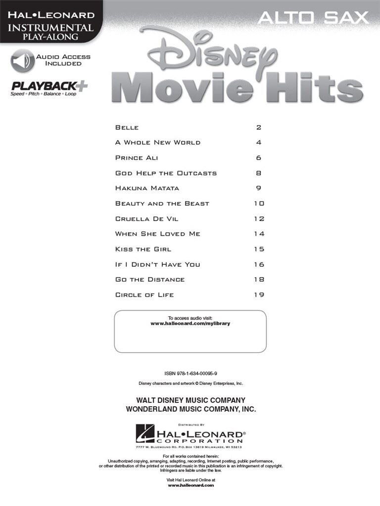 DISNEY MOVIE HITS ALT SAX PLAY ALONG+AUDIO ACCESS